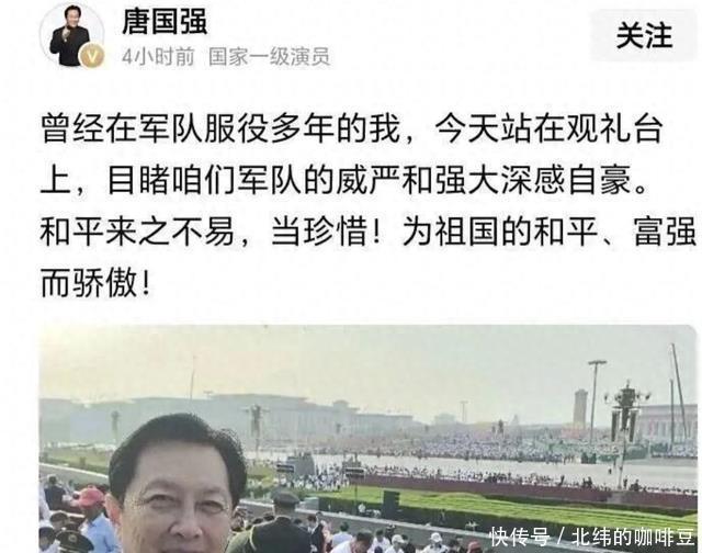 其实明星代言广告这再正常不过了,不能因为他是唐国强老师我们就不让他接广告。 当国家邀请艺人观礼时,是对他们社会影响力的肯定,很多人对明星的要求似乎越来越严苛,一种完美圣人的期待正在形成。